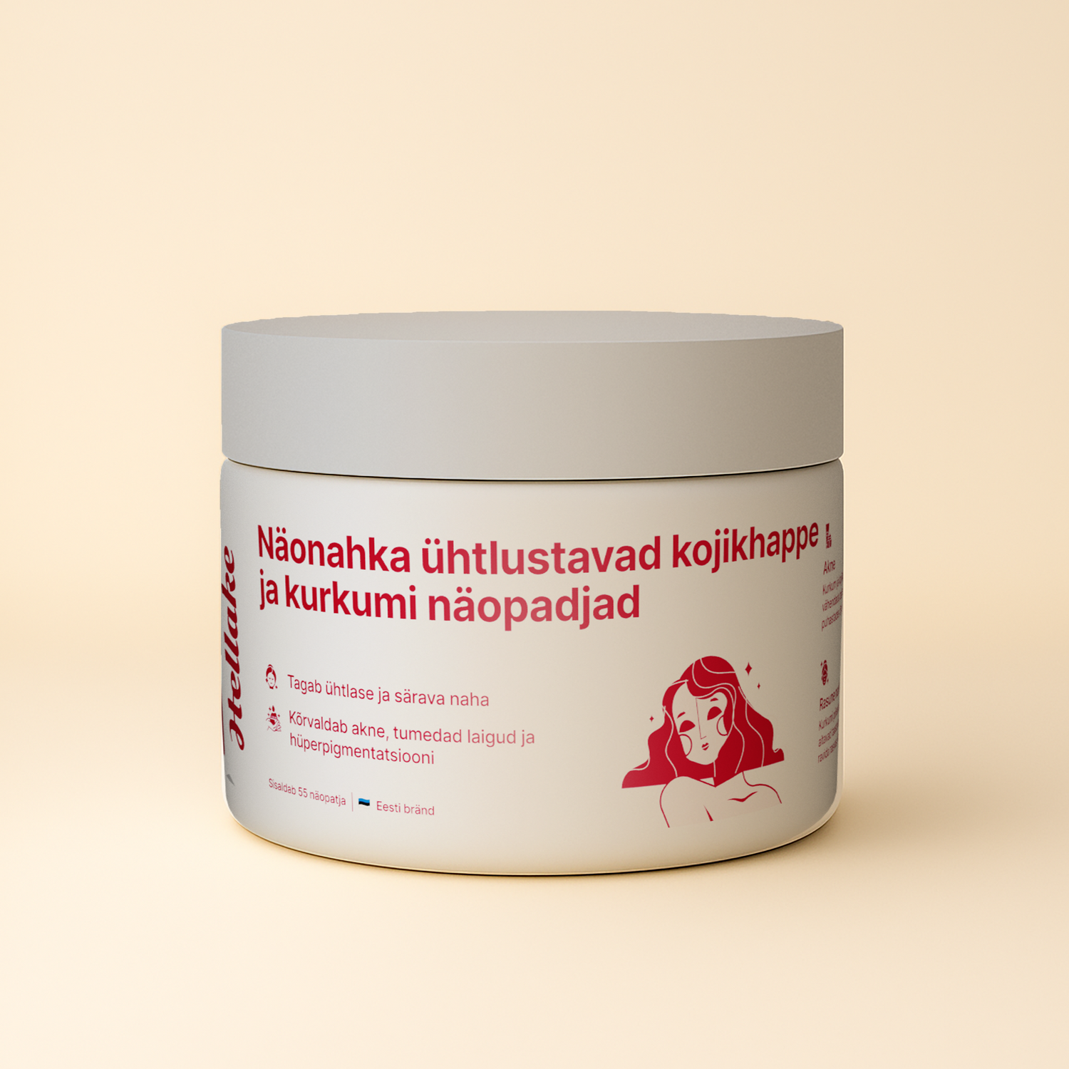 Eesti brändi loodud kurkumi ja kojikhappe näopadjad aitavad ühtlustada naha tooni, hajutada tumedaid laike ning vähendada aknet, arme ja kortse. Padjad muudavad naha säravamaks, siledamaks ja ühtlasemaks.
